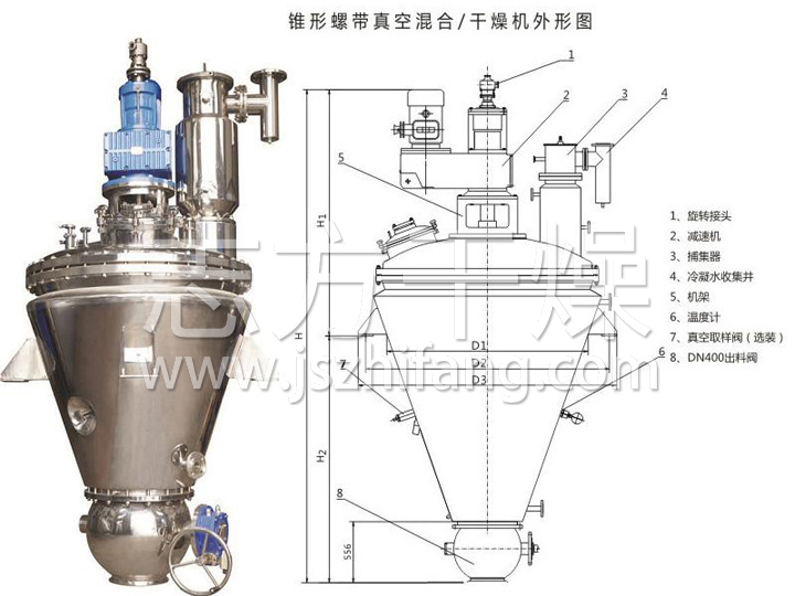 錐形螺帶混合真空干燥機(jī)產(chǎn)品概述: